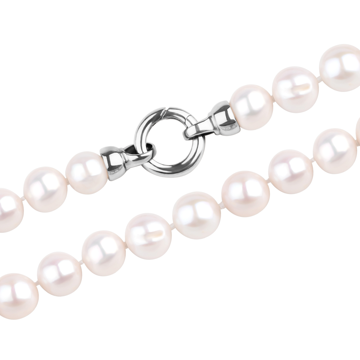 Ruda: Stříbro Ukázka: 925 Délka: 20 cm Dekorace: sladkovodní kultivované perly, typ biwa, kulaté, průměr 9-10 mm, barva bílá, dobrá kvalita Průměrná hmotnost: méně než 5 g Kvalita perel potvrzena certifikátem pravosti ANO