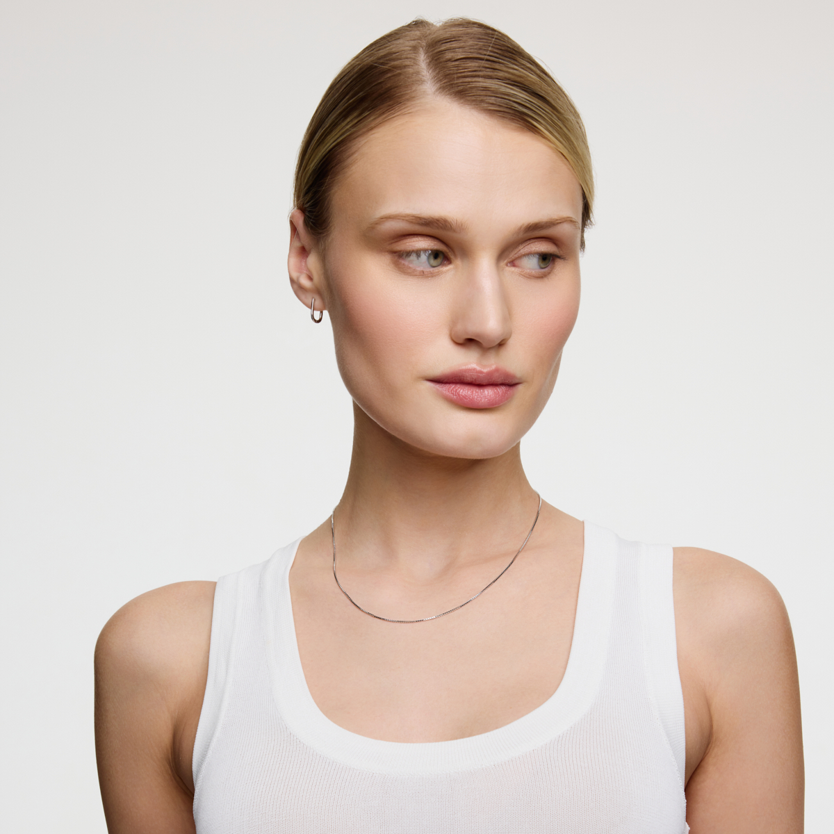 Strieborná retiazka s členkovou väzbou. Šírka 1 mm. Šterlingové striebro 0.925.