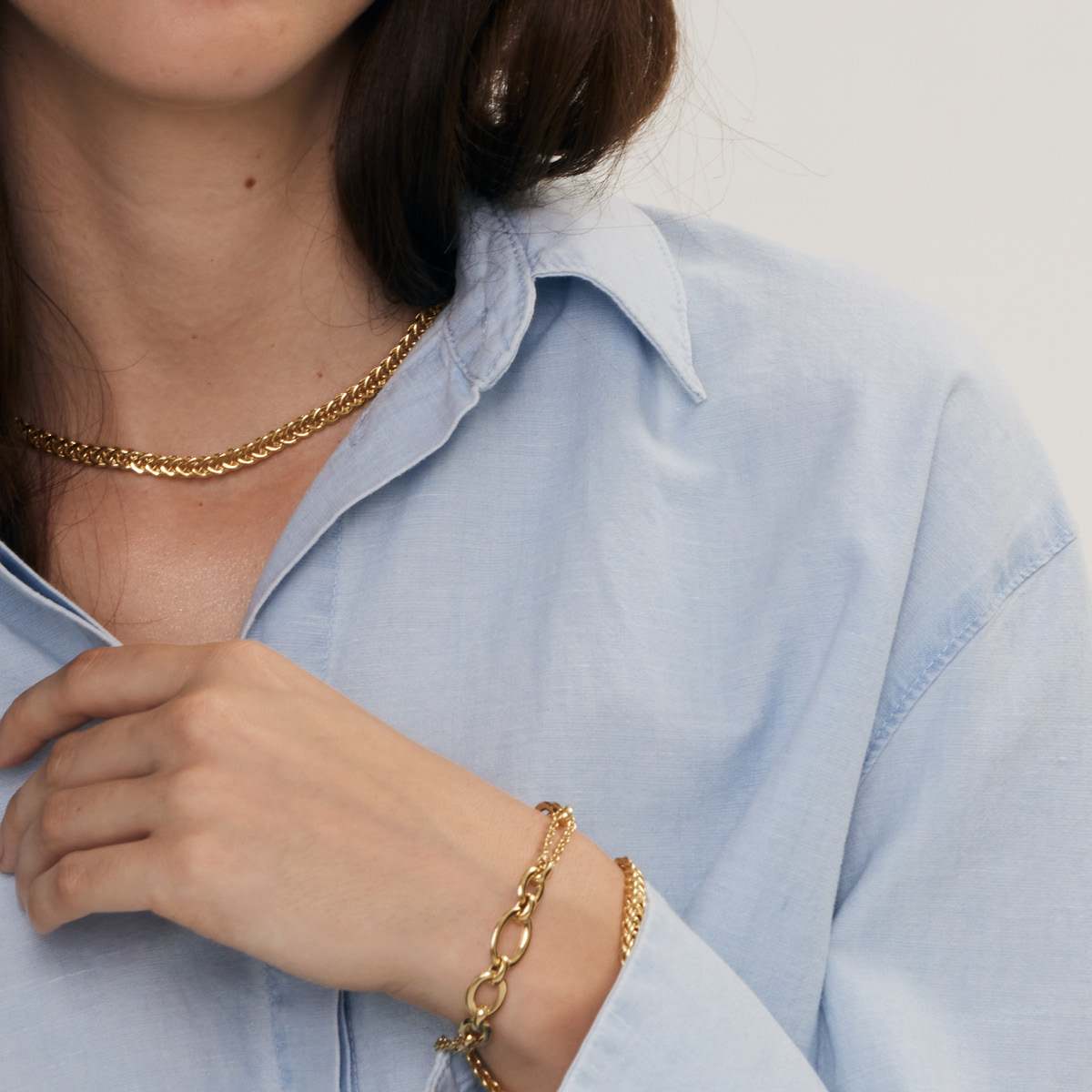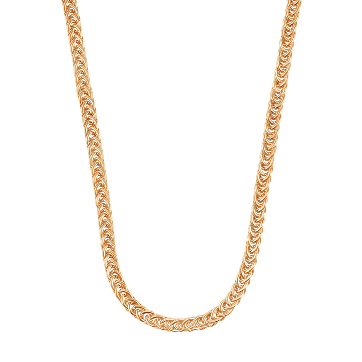 Zlatý náhrdelník s hustou vázou a kompaktnou formou, vyrobený z mäty 585. Klasický dizajn s výrazným charakterom - dobre zapadá do výšky a vytvára silnejší akcent v štýle. Je to solídny dizajn pre každý deň a na ďalšie výlety, pre ľudí, ktorí oceňujú kvalitu a nadčasové detaily.